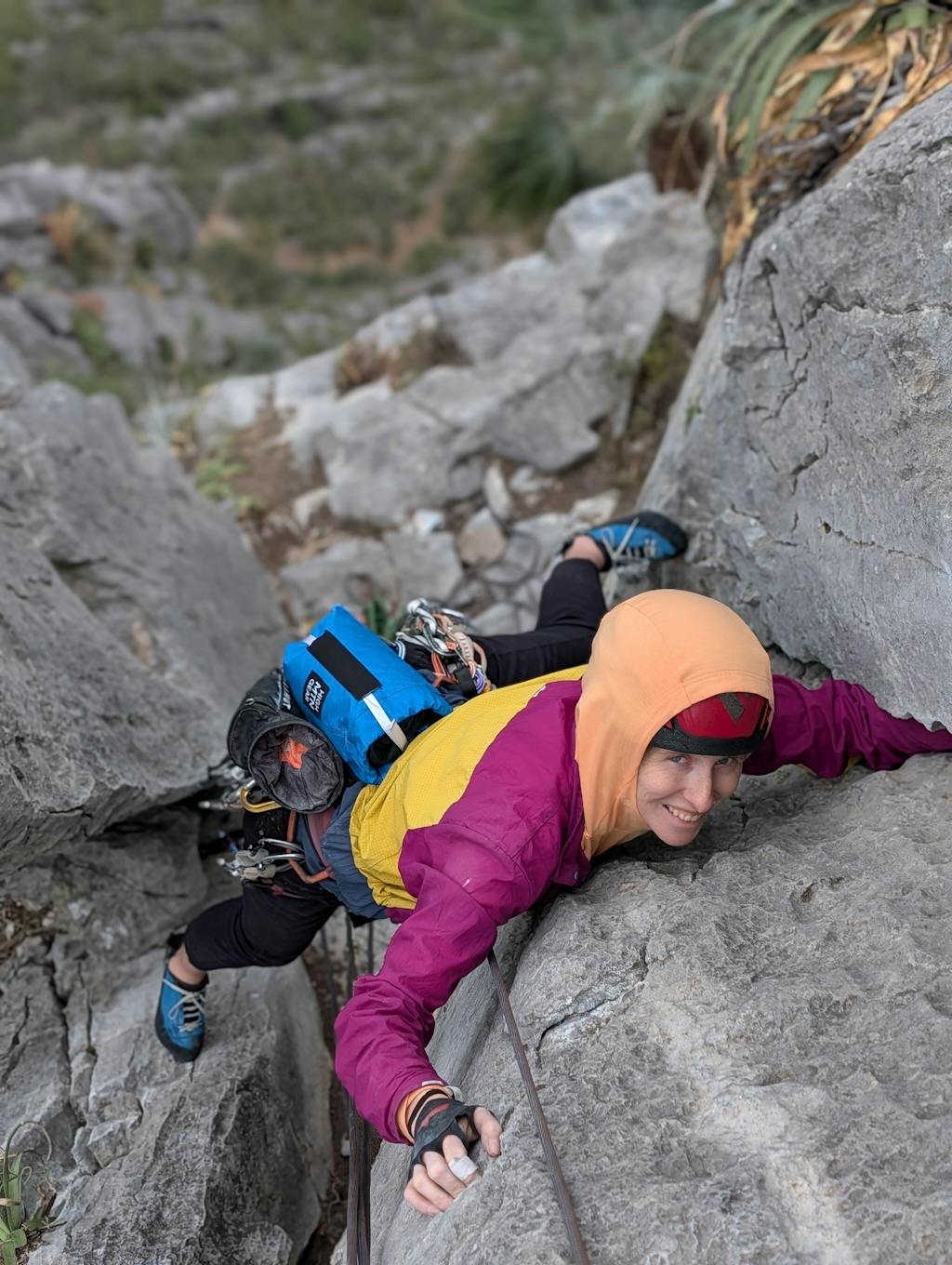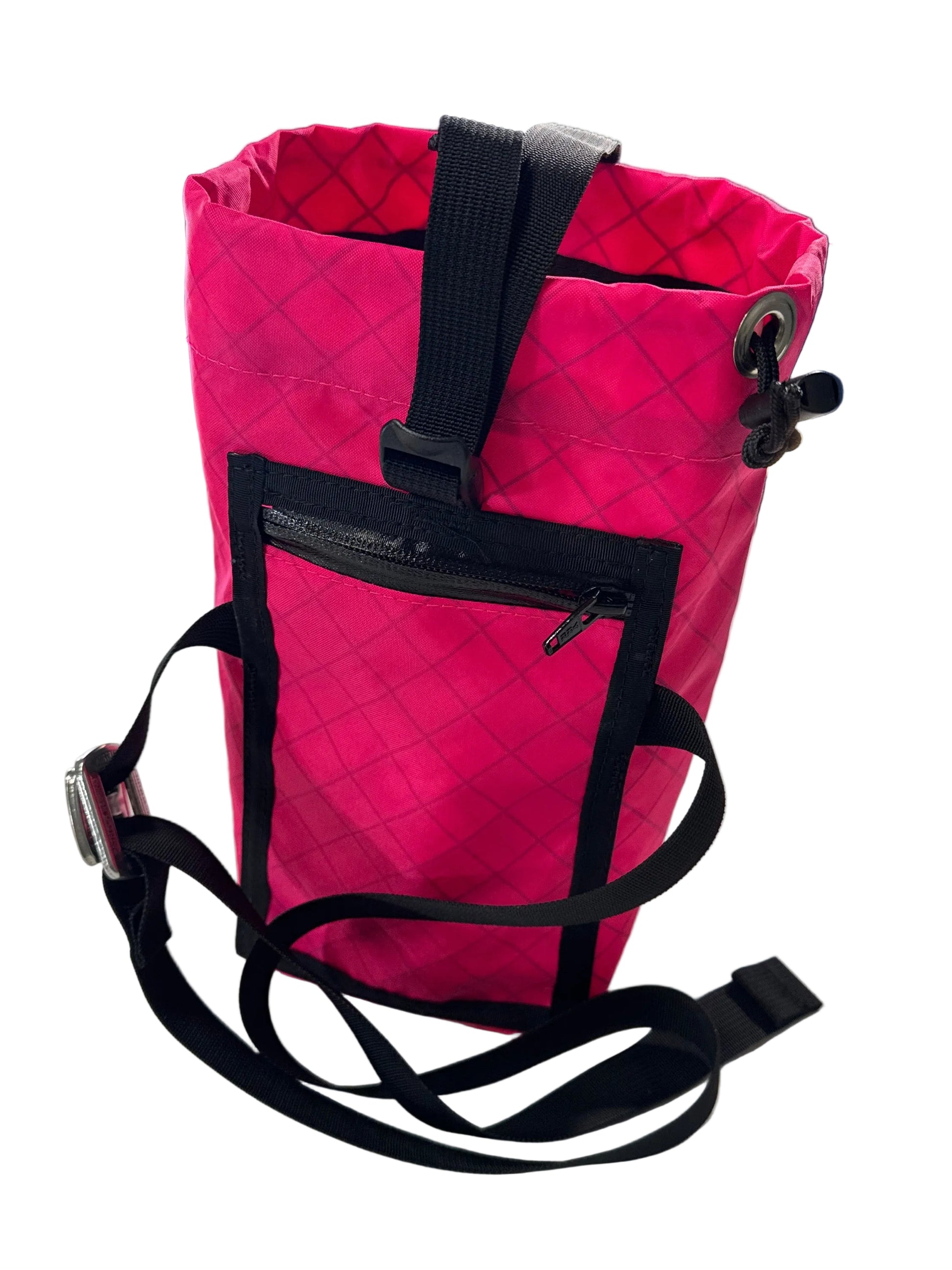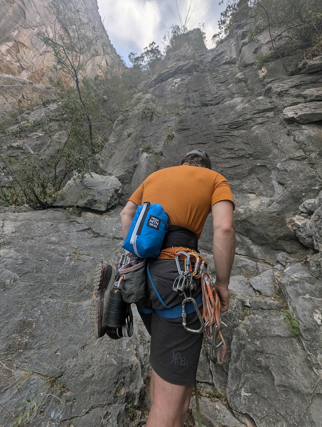 This empanada waist pack made multi-pitch climbing so much easier. I've always preferred a back pack to having a bunch of stuff dangling off my harness, but on long or challenging multi-pitches carrying a backpack sucks. This pack solves that problem, sits like a chalk bag and I hardly noticed it is there, and is doesn't dangle/ change my balance. It fits a puffy jacket, small first aid kit, snacks, headlamp, 1/2L of water and a phone, something I have never seen another bag like it accomplish.