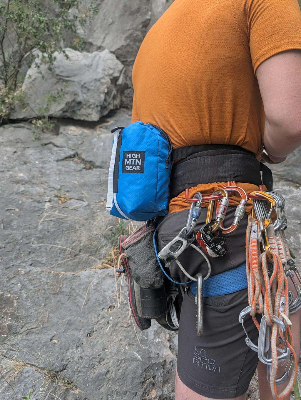 This pack has changed the way I pack for most multi pitch routes. Most "harness bags" out there aren't quite big enough, making do you end up with 3-4 dangling pods to get everything you need. This pack fits a first aid kit, food, jackets, headlamp and phone, giving me everything I need for most 6-12 pitch routes!