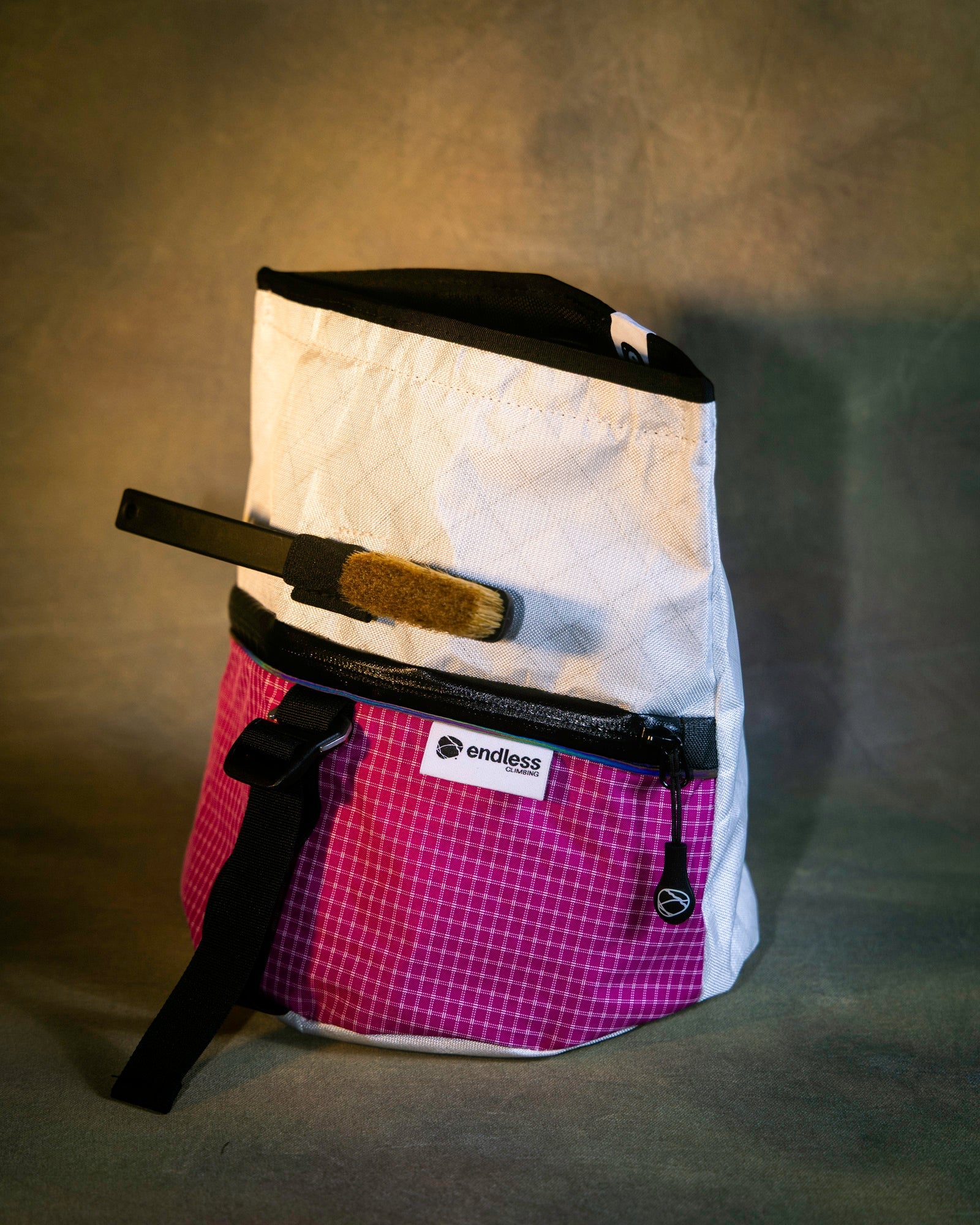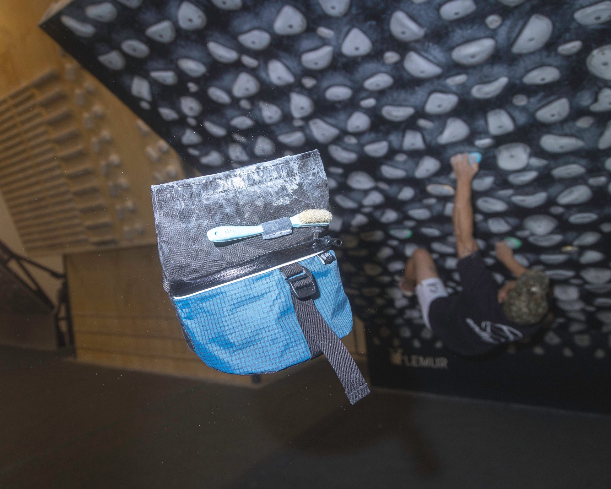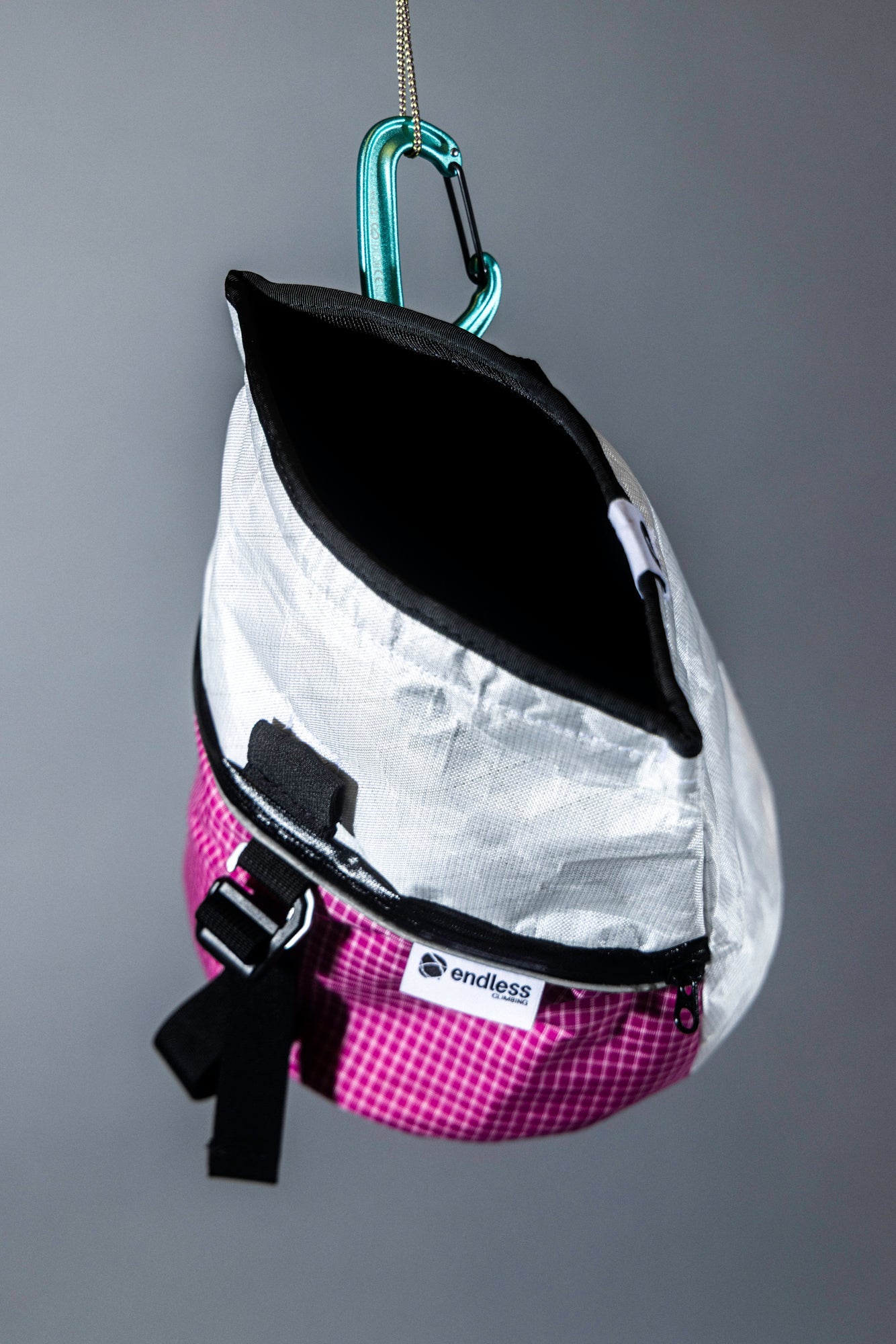 - Roll down and buckle to end the session without spilling chalk in your bag