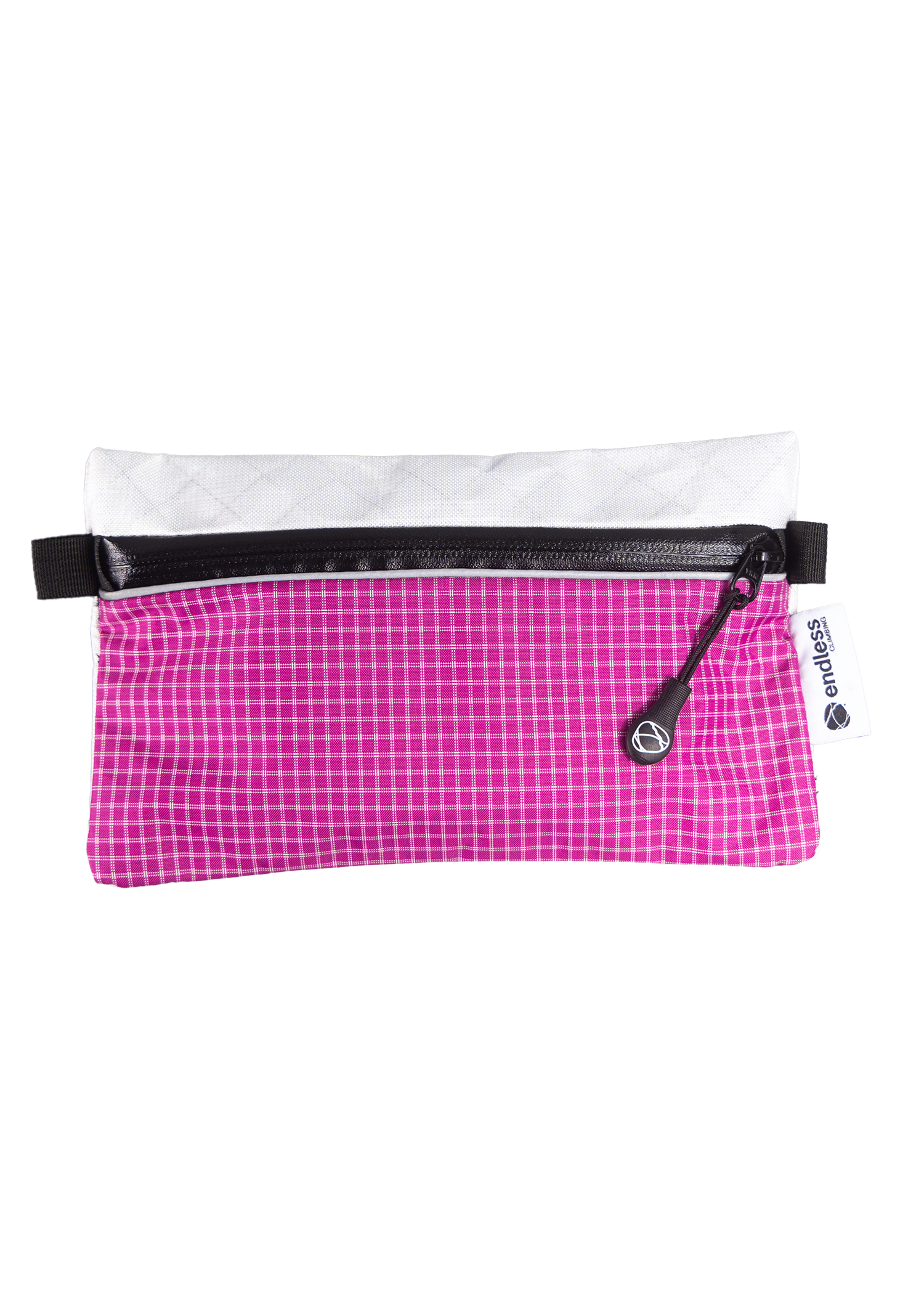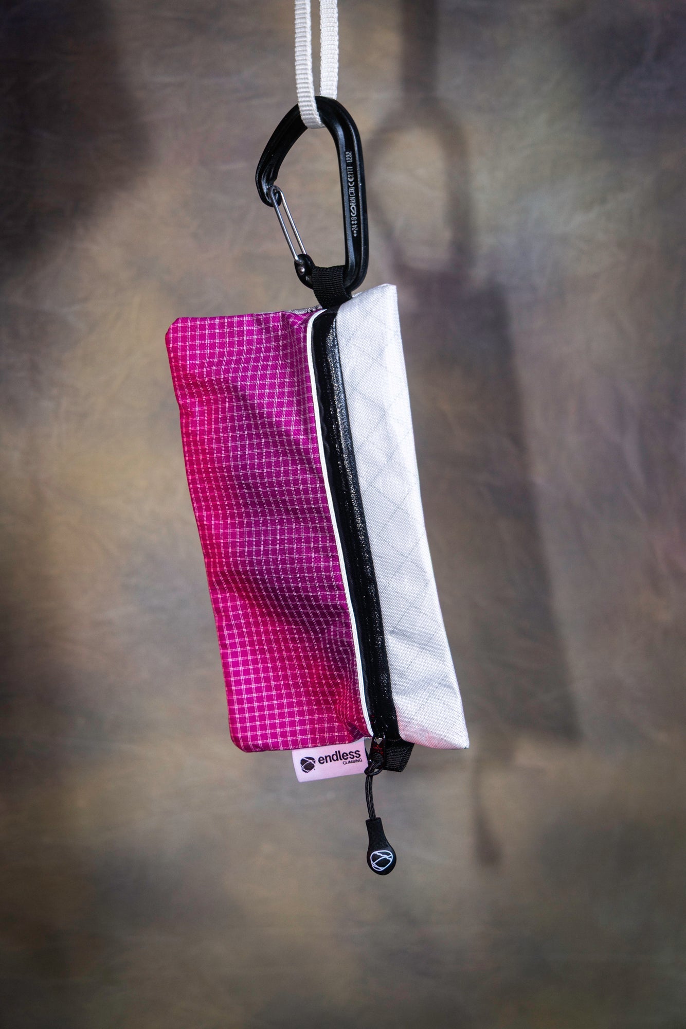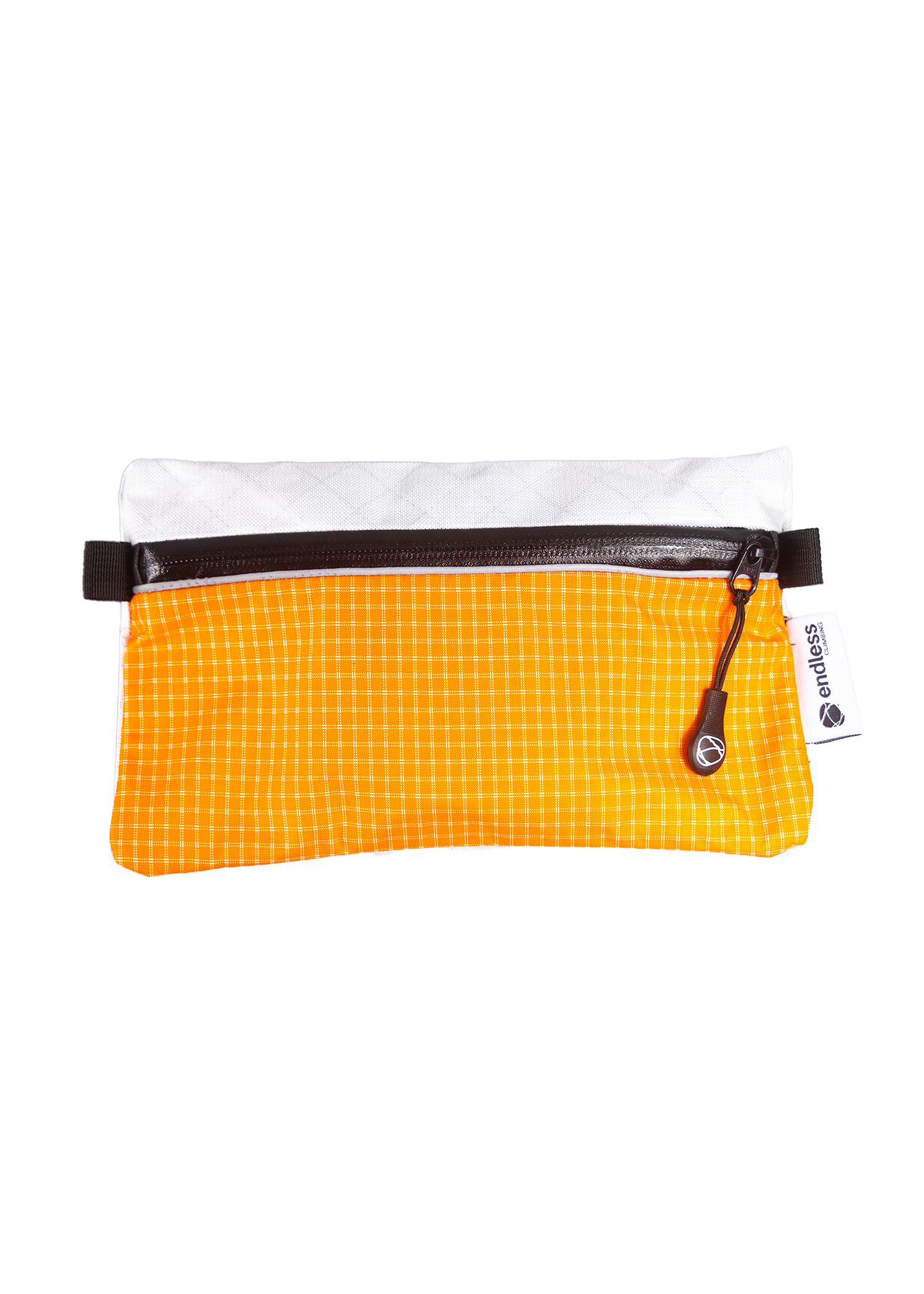 Organize your everyday accoutrements with our small accessory bag. It measures @ 9" x 5.75" - enough for all of your climbing essentials, electronic gear, or travel needs. It's made out of Ultra 400X or TX, along with a waterproof zipper, 2 pull tabs, and reflective piping.
